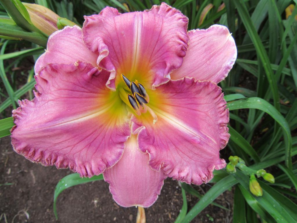'Coastal Dawn' was named by the men in the community choir in which I sing, Coastal Voices Men's Choir www.coastalvoices.ca. All of the proceeds from the sale of this plant goes to support the choir. The colours in 'Coastal Dawn' are reminiscent of the colours of the sky in the early morning hours just before daybreak, especially in winter. 'Coastal Dawn' has a large lilac rose flower that opens very well. There is a slightly green throat that turns to a strong lemon yellow colour. The yellow throat is encircled by a dark purple eye. The dark purple colour of the eye is also visible around the edge of the petals. The outer edge of the petals has a lighter cream colour that encloses the dark purple. The petals have tight crimping all the way around with some larger ruffles. The scapes have 3-5 way branching and up to 25 buds per scape. Since it has a high bud count, as an established clump it tends to bloom up to 5 weeks. The cross was between my 2014 introduction 'Jodi DeLong' and Don Longton's, 'Forever The Optimist'; making it a truly Nova Scotian daylily! $26 Double Fan